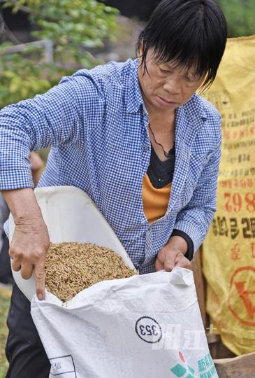 11月25日上午,阳东区红丰镇珍珠村的“鱼塘种稻”基地一片繁忙,一片片水稻从鱼塘“上岸”收割,工作人员忙着检查品质、重量,“亩产达到了258公斤!试验成功!”(摄影师:李向东 李坤洋)