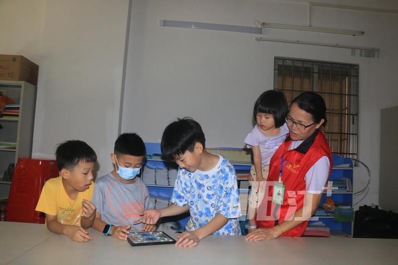 7月中旬,进入暑假以来,几乎每天都有家长送小孩到扬爱志愿服务站托管。孩子有了可以安心学习的去处,他们才能放心去上班。家长们的放心来源于市扬爱志愿者协会的大胆尝试。该协会副会长梁翠霞主要负责助学行动,想到暑假学生放假在家,家长却要正常上班没有精力照顾孩子,她提出利用服务站的平台开展暑期义务托管服务。(摄影师:陈子玲)