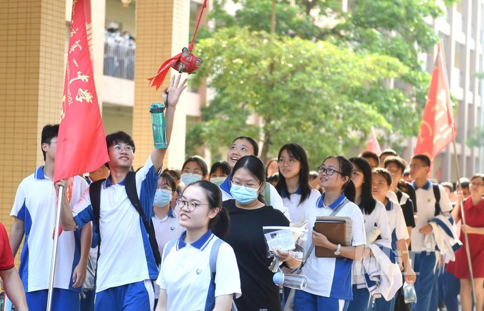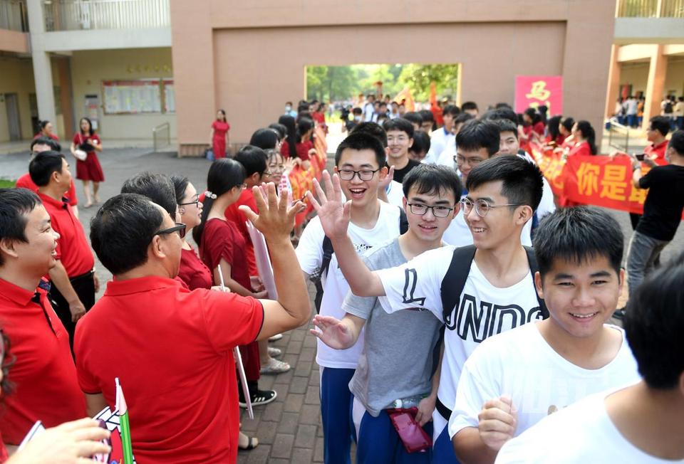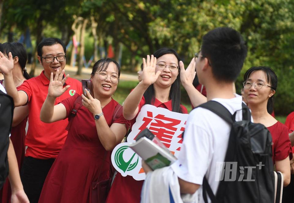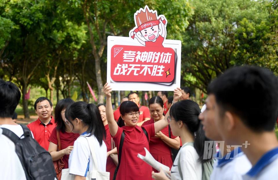 图:老师们为赴考的学子加油鼓劲。(摄影师:宋福亮)