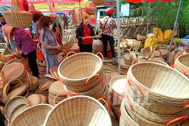 流的河,热情的人,汇聚成了千年的高流墟。6月2日,农历五月初四,是四方游客相聚高流墟的日子。他们挑选精美的竹制品,泡在河里洗一洗,身体也感受着河水的流动。(摄影师:谭文强)
