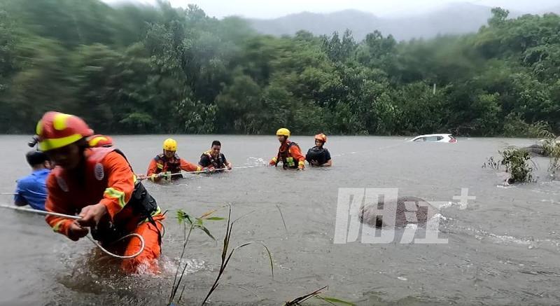 轿车盲目涉水通过漫水桥被冲下河,阳春消防及时救援